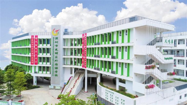 光明区外国语学校在改扩建时,充分考虑了教育功能与校园环境的融合,新建的教学楼设计新颖,现代化的建筑材料和工艺让它外观简洁大气又不失活泼。校园绿化更是精心布局,绿树成荫,花草摇曳。
